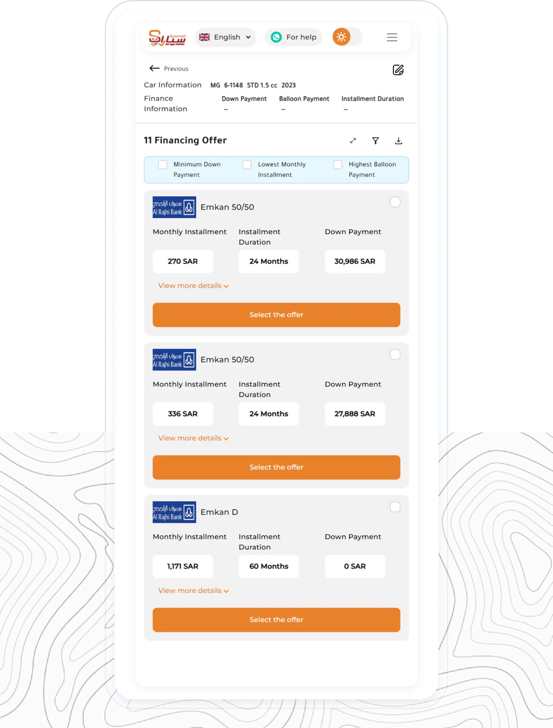 Daily updated financing offer to suit customers and finance providers